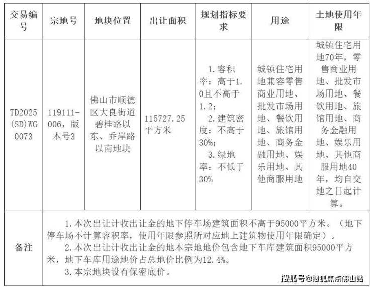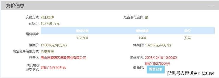 今日(12月18日)早上,佛山市顺德区德睦置业有限公司以超15亿夺得大良街道碧桂路以东、乔岸路以南地块,折合楼面价约1.1万/㎡。