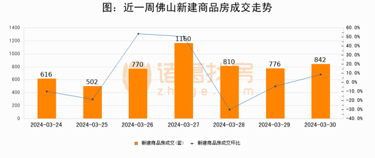 【佛山成交日报】03月30日新房成交842套、二手房322套;涨价房源4套