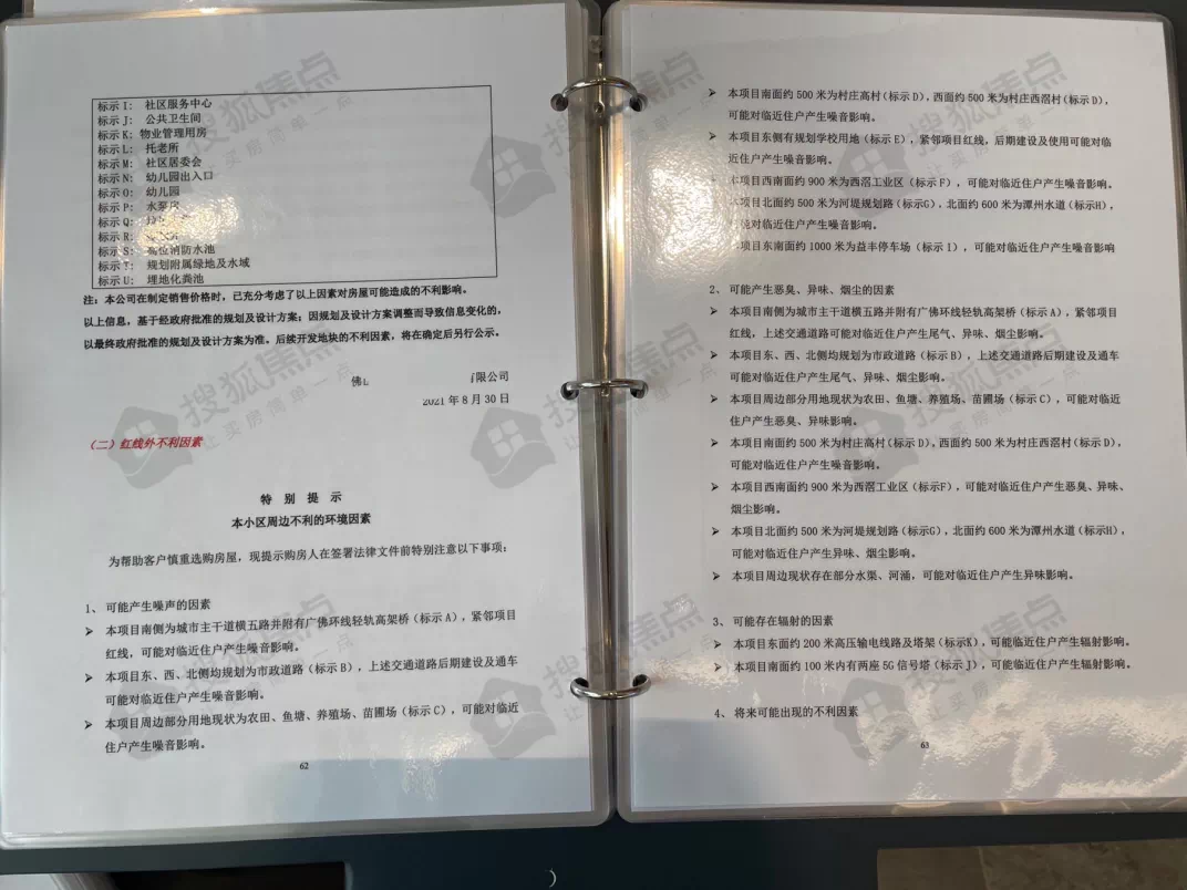 这是开放商最不想让你知道的,也是交付后出现维权问题的导火线。每一个项目红外线内外的不利因素及不确定因素,都应在售楼处展示,但因为放置地点较为隐蔽,销售也不会主动带你了解,导致很多客户忽略了这个重中之重的公示。房子后天设计短板,比如地面停车场入口、垃圾站、变电站、物业房等住宅配套,会对相对应的楼栋、楼层造成通行便捷、异味、噪音等影响。