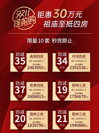 如今的双十一,早已不是零售平台的专属狂欢派对,大宗消费品比如汽车、房产,已试水多年。今年,在黑天鹅事件阴影笼罩下,房地产陷入后疫情时代的破局困境,利用节点翻身,是愈发焦虑的开发商仍想抓住的小希望。至少提前半个月,各大开发商、中介机构开始摇旗呐喊,大促优惠、总经理特批、一口价、家电好礼等各种价格冲击,试图将双十一变成购房者的节日。血拼归血拼,切忌冲昏头脑,忽略了背后隐藏的“猫腻”。