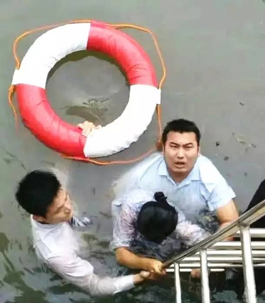 正在值班的朱国栋立即带上两名安管同事急忙赶到现场实施援救。因轻生女子寻死意愿非常强烈,朱国栋冒着被女子按下水的风险毫不犹豫地跳入了河涌进行救援。最终,成功将轻生女子救出。