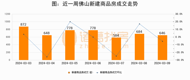 【佛山成交日报】03月09日新房成交646套、二手房296套;涨价房源25套