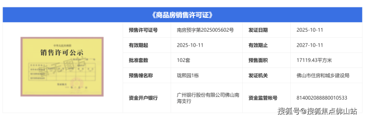 近日,佛山房产信息网数据显示,桂城瓏熙领取《商品房销售许可证》。