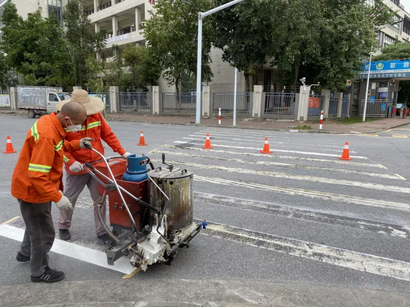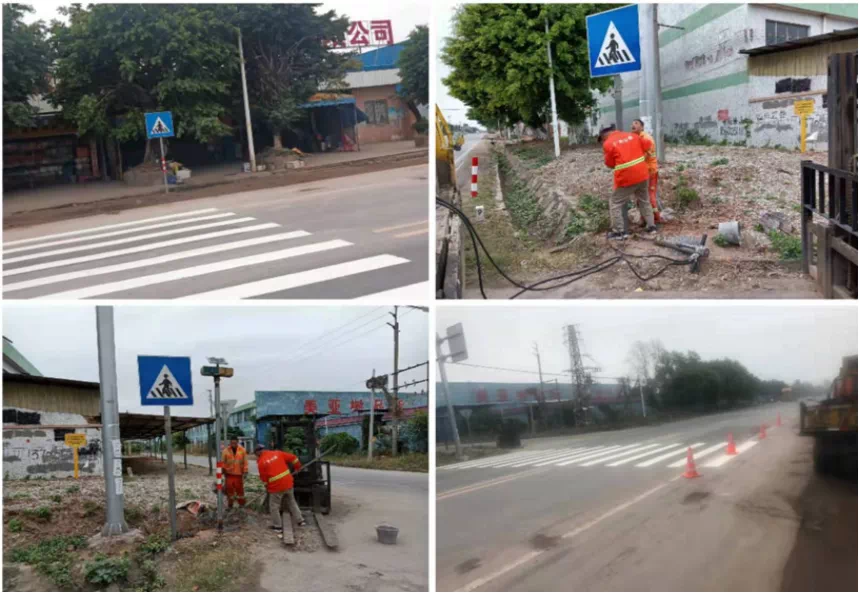 已完成高明高级技工学校周边道路人行斑马线的翻新施划。