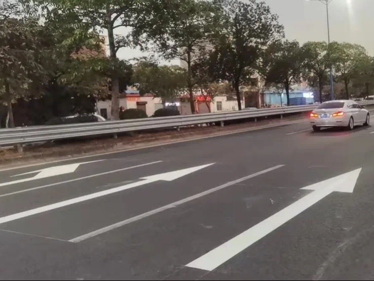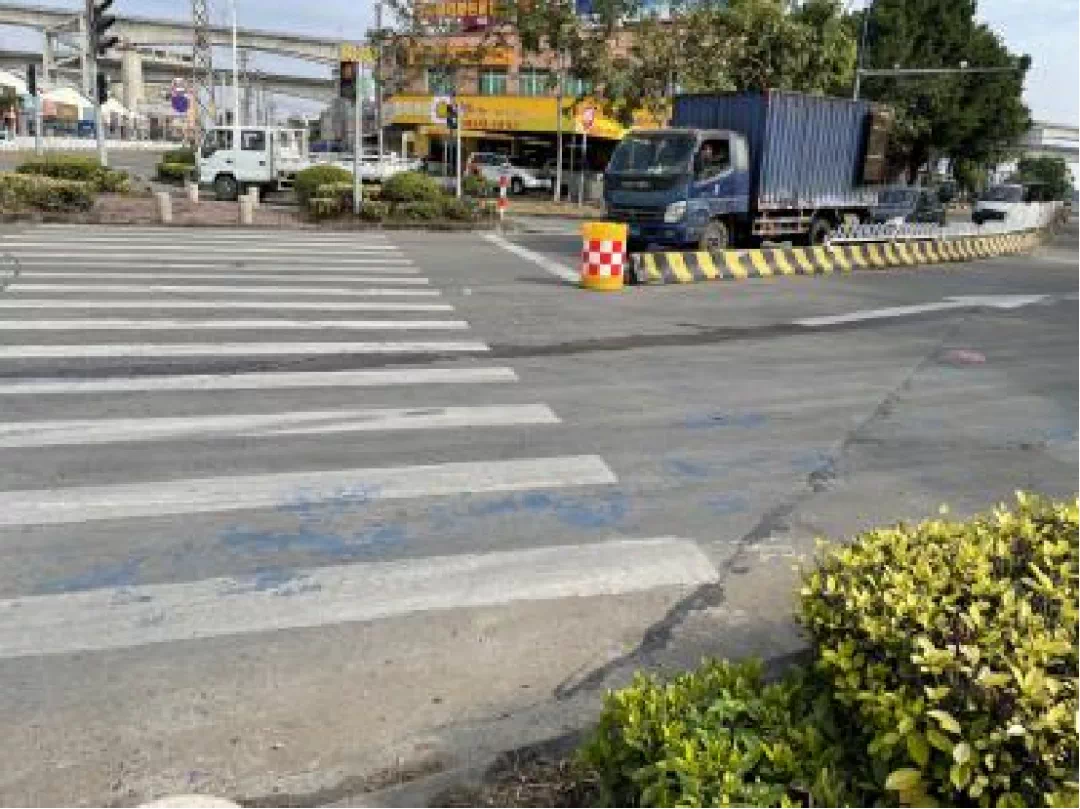 已将原有人行横道标线往超市门口迁移,同时在人行道前加装“注意行人”警示标牌,并安装警示闪灯,强化标识警示作用。补回道路中央护栏,确保行人过街安全。