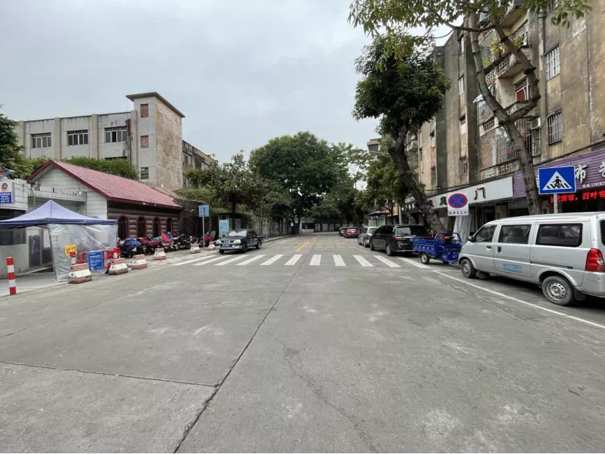 高明高级技工学校附近以及周边的道路人行道标线模糊。
