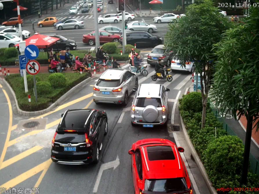 启用镇安路右转红绿灯,减少人车冲突,保障行人过街安全,同时细化各时段方案,高峰期控制镇安西路汇入季华路车流,降低季华路排队压力,平峰期适当增加镇安西路通行时间,提高通行效率。