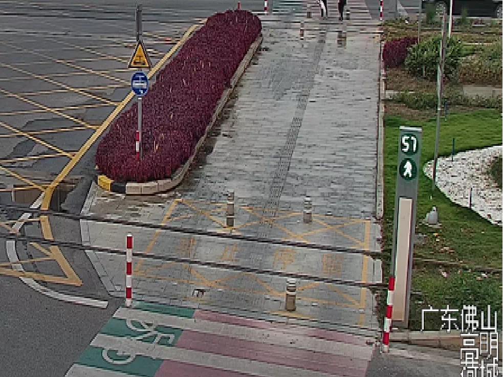 禅炭路往禅城方向涌表立交桥上桥处指示牌前的树进行修剪树枝树叶,路口处已新增导向标线,道路红绿灯处均设有斑马线和人行天桥,行人过马路方便安全。