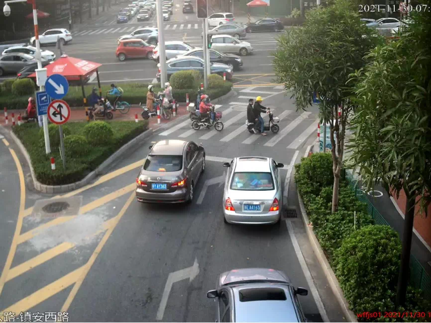 对西青大道与北江大道平交口交通信号灯右转时受信号灯控制调整为全天右转黄闪,同时已加装不礼让行人抓拍设备,保障行人过街安全。