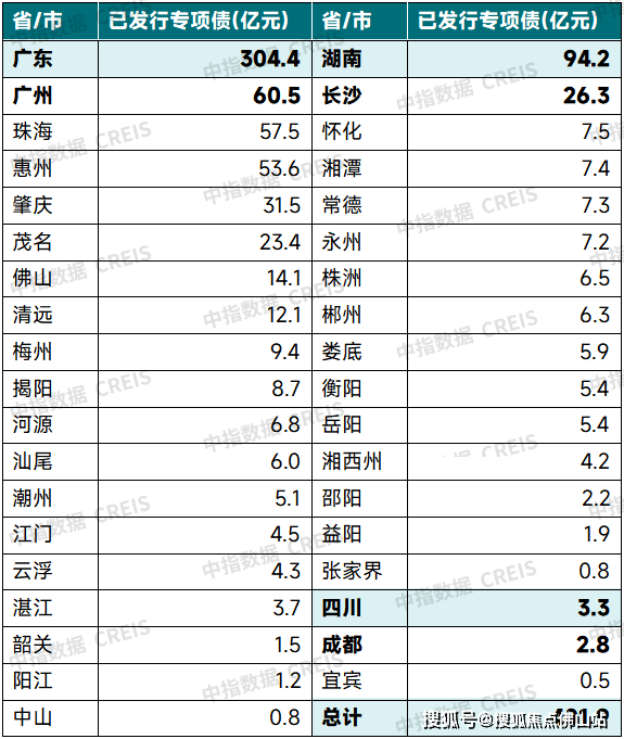 值得关注的是,目前各地用于收储存量用地的专项债发行规模略小。据中指研究院统计,截至4月10日,广东、四川、湖南发行的用于收购存量闲置土地的专项债总金额约为402亿元。在各个城市中,广州发行专项债金额超60亿元,位居各城市首位,二线城市长沙发行26.3亿元、成都发行2.8亿元。