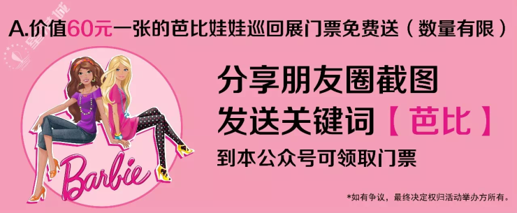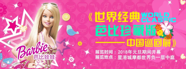 值得一看!世界经典玩具芭比娃娃收藏版巡回展将于近期登陆金沙洲星港城·万达广场啦(门票售价:60元/张),具体详尽的展览活动信息,请留意本公众号后续文章!