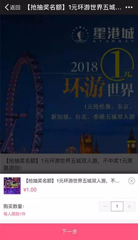 第①步:关注官方微信:【星港城服务号】,点击菜单栏【环游世界】,预付1元