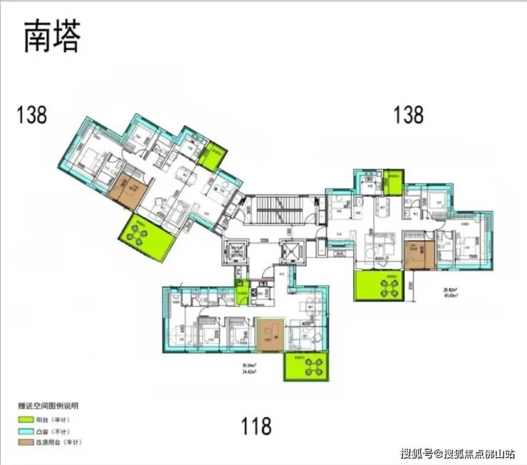 其中前者户型涵盖118㎡、138㎡四房,客餐厅一体化设计。