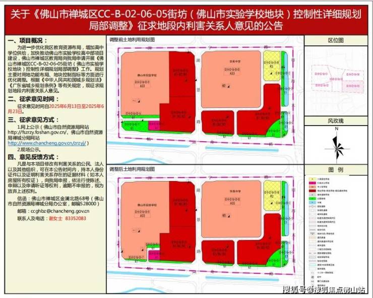 佛山市自然资源局禅城分局发布一则公告,提及“为进一步优化我区教育资源布局,增加高中学位供给,加快推动佛山市实验学校高中部项目建设”。