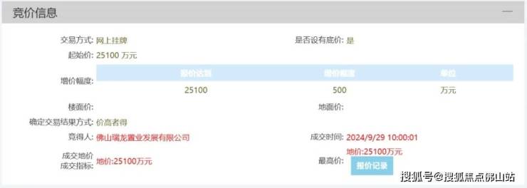 最终,由佛山瑞龙置业发展有限公司于以地价2.51亿竞得,该公司为佛山城发集团旗下的公司。