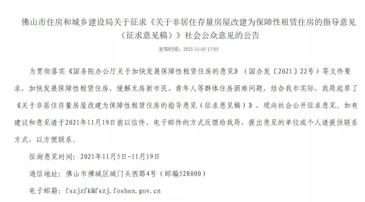 近日,住建局发布征求意见稿提到:商业办公、酒店旅馆、厂房、仓储、科研教育等非居住存量房屋,可申请改建为保障性租赁住房。