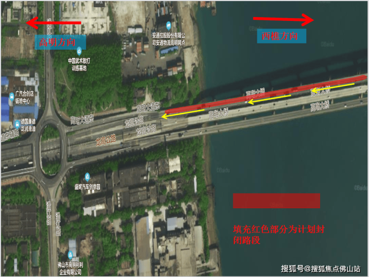 届时,高明大桥新桥(西樵往高明方向)将封闭一条车道,详见下图路线: