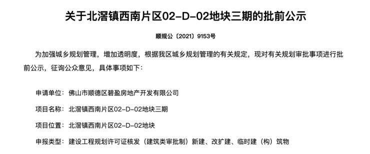 近日,佛山市自然资源局顺德分局发布了《关于北滘镇西南片区02-D-02地块二期的批前公示》、《关于北滘镇西南片区02-D-02地块三期的批前公示》。