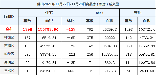 据搜狐焦点佛山站统计佛山房产信息网数据,本周佛山新房成交1398套,成交总面积约15万㎡,环比下跌12%。