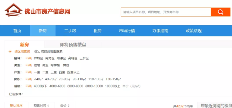 输入开发商或项目名称进行查询 来源:佛山房产信息网