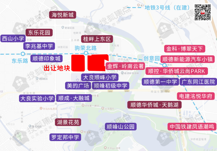 从地块位置来看,宗地就位于大良城中心位置,紧邻建设中佛山地铁3号线驹荣北站。周边配套丰富,涵盖印象城购物中心、顺成大融城等生活配套,与顺峰山公园直线相距约500米,2公里直径范围内更有欢乐海岸PLUS、广东同江医院和顺德排名前列中学等。