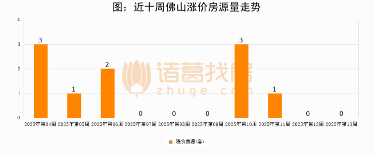 从调价房源来看,第13周佛山涨价房源0套,较上周持平。与此同时,13周涨价房源占比提升100个百分点,业主信心持续恢复。