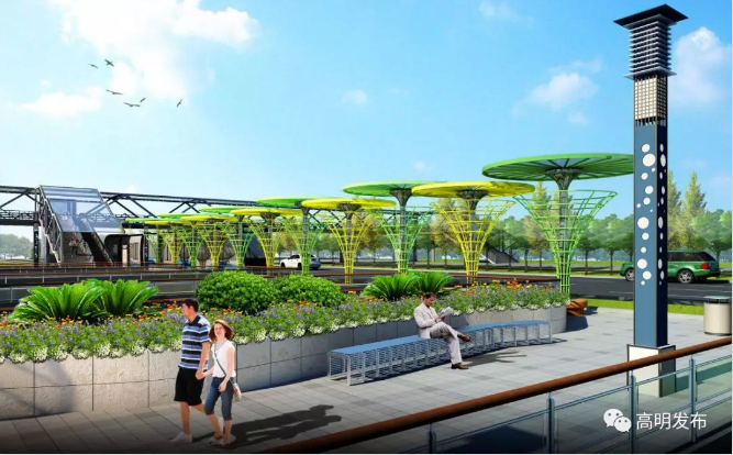 (有轨电车明湖公园站较新效果图 图源高明发布)