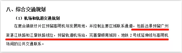此外,在去年9月高明区政府发布的《高明区分区规划(2014-2020)》公示中明确,机场周边交通线路预留了江肇铁路线位。