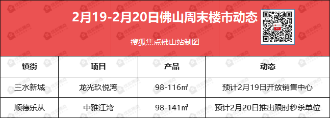 据小狐不完全统计,佛山楼市本周末(2月19-20日),至少有2盘有营销节点。