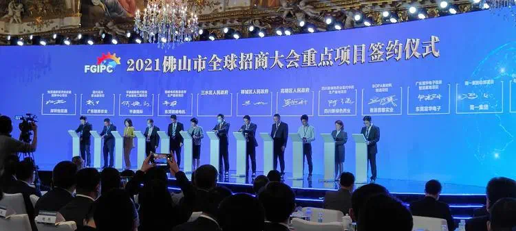 2021佛山市全球招商大会举行重点项目签约仪式。