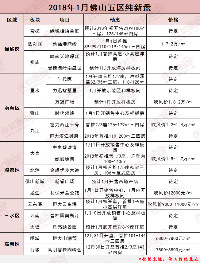 作为2018年开篇的1月,佛山将迎来39个新盘新货入市,纯新项目有20个,占比超过一半,集齐了岭南天地璟廷、新福港鼎峰、时代家等大热盘。