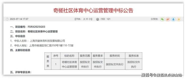 近日,禅城政府发布一则“奇槎社区体育中心运营管理中标”公告。