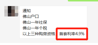 上周,购房交流区群内有消息释出:满足佛山户口;佛山一年社保;佛山一年个税三个条件之一,兴业银行的首套贷款利率可做到4.9%。