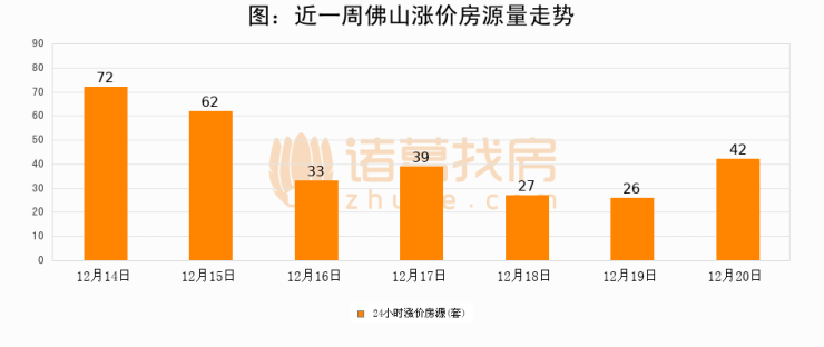根据诸葛找房数据显示,佛山24小时涨价房源量为42套,较12月19日增加16套,环比上涨61.5%。与此同时,涨价房源占比小幅扩大,业主信心有所提升。