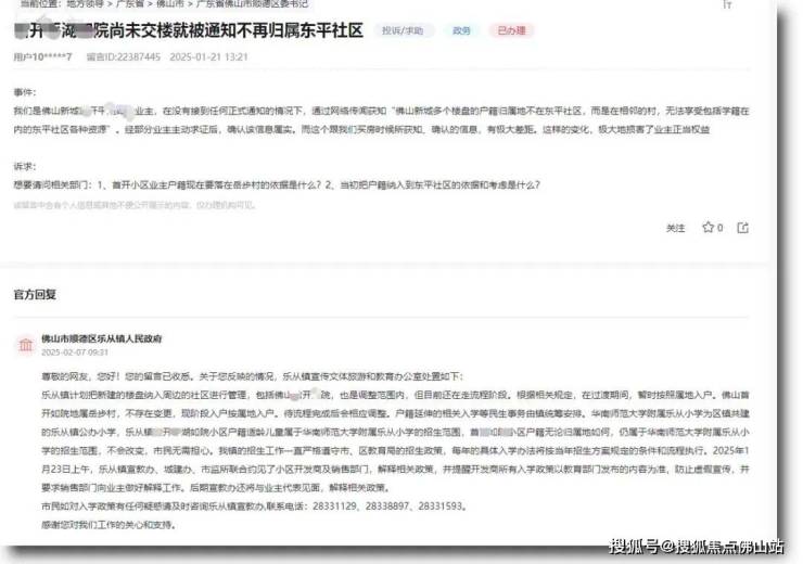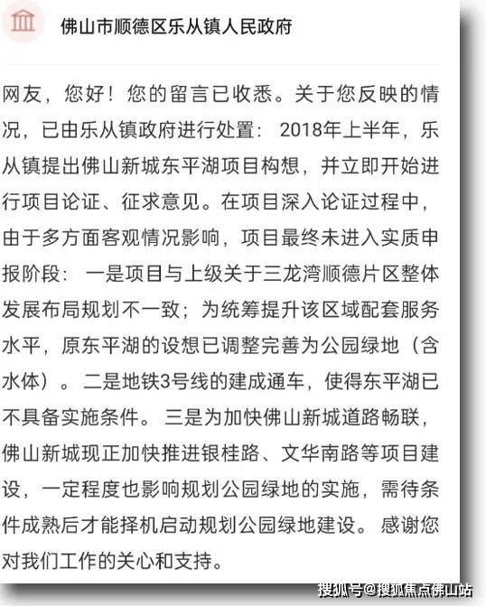 针对此情况,业主们也积极寻找说法,佛山市顺德区乐从镇人民政府在领导留言板回复如下: