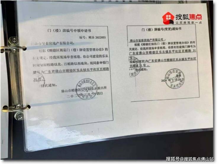项目案场公示的预售证地址、门牌号变更申请书同样有注明东平社区。