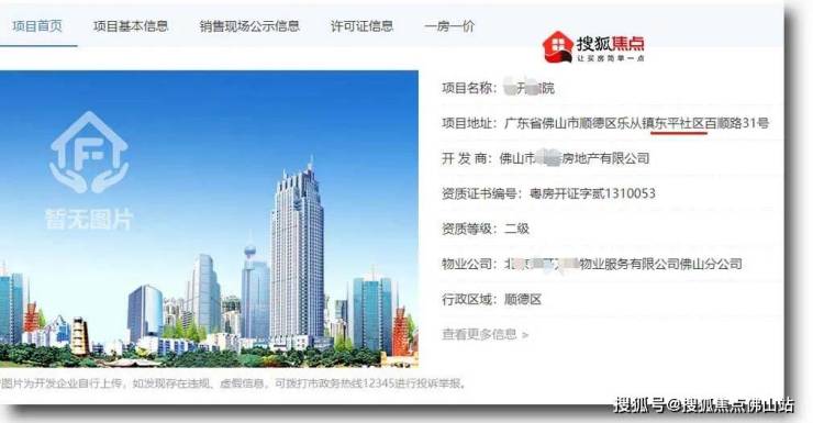 小狐通过佛山住房保障和房产信息网查询,该盘地址显示“广东省佛山市顺德区乐从镇东平社区百顺路X号”。