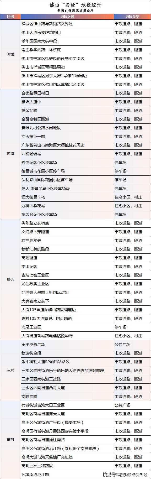 最后附上佛山部分易涝地段。