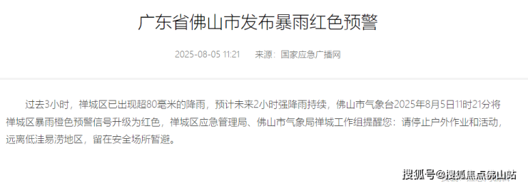 至于佛山,8月5日午间分发布暴雨红色预警,过去3小时,佛山五区已出现超260毫米的降雨量,预计未来2小时强降雨持续。