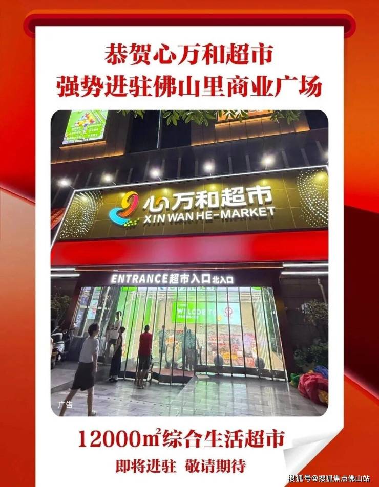 此前心万和超市官宣入驻佛山里,该超市面积约1.2万㎡,位于负一层。