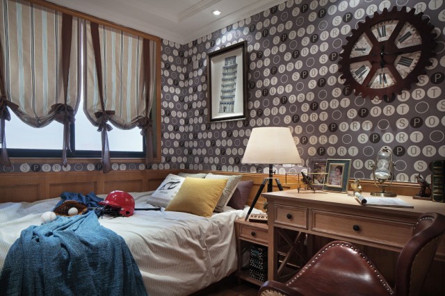 年轻人思想较为前卫开阔,审美方面也会喜欢更为潮流的事物,因此,次卧的整体设计不论是用色还是装饰物点缀都非常大胆,特别符合居住者的个性。