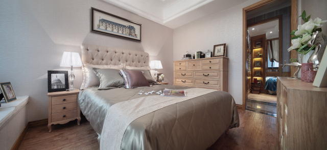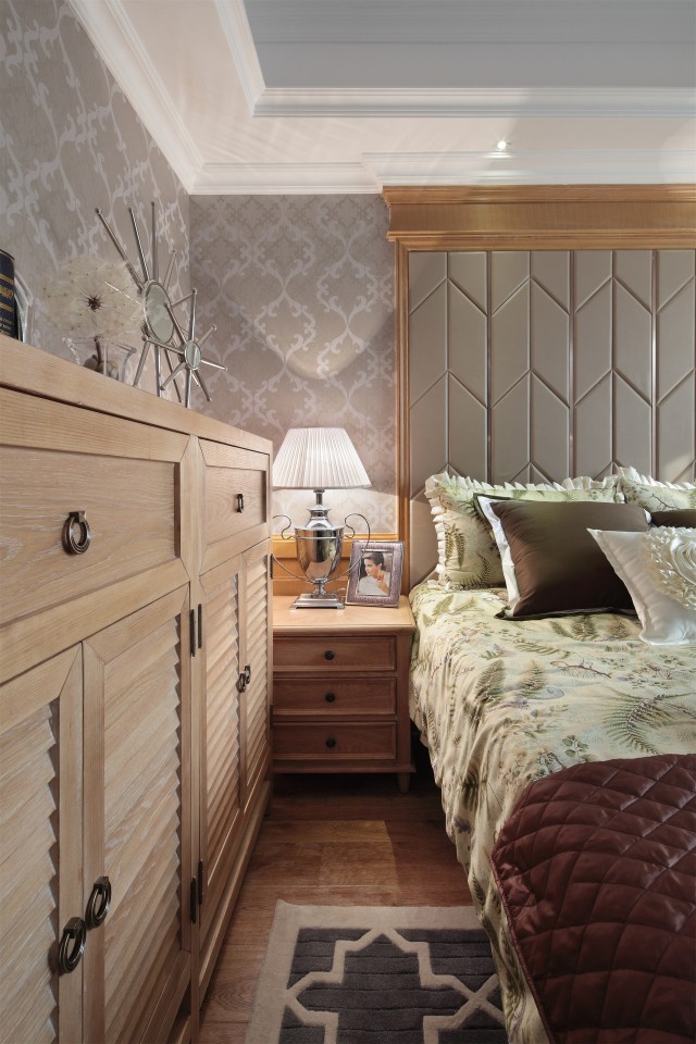 主卧以白色为主色调,各种彩色为辅。空间中用原木色来点缀,还原大自然的气息,让家有了一种返璞归真的轻松感觉。硬装与软装的搭配,都遵循了为业主打造更为舒适的休息空间,让业主每一天的疲劳,都能在这卧室中得到更好的放松和缓解。