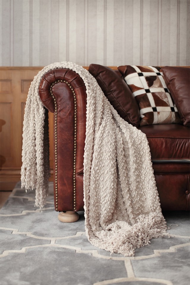 沙发造型很别致,金属颗粒收边很显高级感,底部承重处用了圆木做支撑,做工、细节方面很是优质,