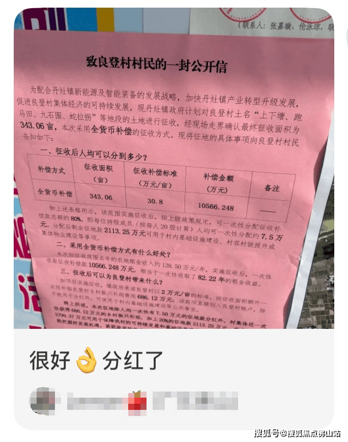 近日,有村民爆料自己即将入账征地补偿款,还发出了一份“致良登村村民的一封公开信”。