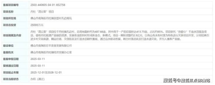 广东省投资项目在线审批监管平台显示,丹灶“清云里”项目已通过备案。