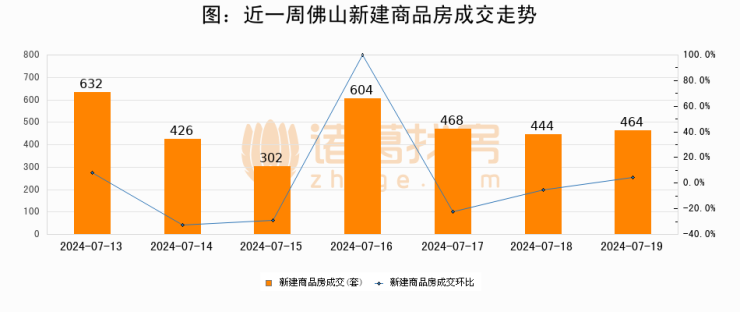 【佛山成交日报】07月19日新房成交464套、二手房554套;涨价房源25套