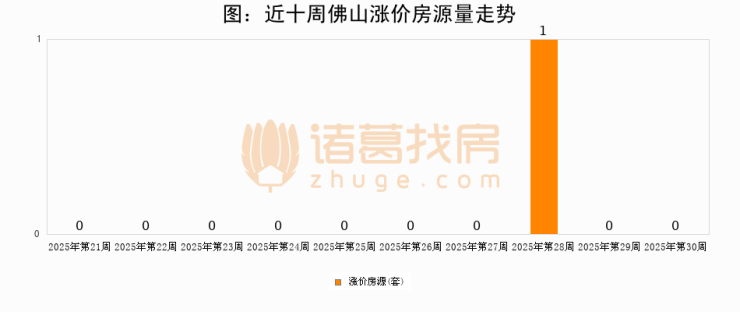 从调价房源来看,第30周佛山涨价房源0套,较上周持平。与此同时,30周涨价房源占比持平
