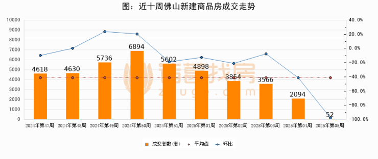 【佛山成交周报】第05周新房成交52套,二手房348套,涨价房源1套