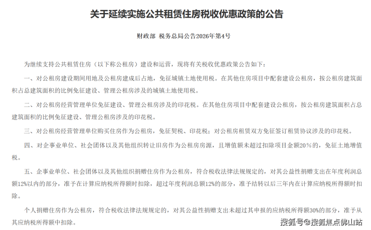 1月16日,财政部、税务总局联合发布关于延续实施公共租赁住房税收优惠政策的公告。