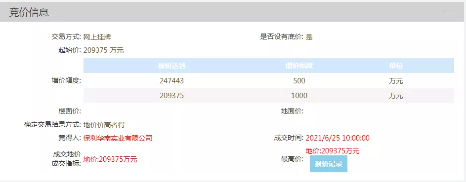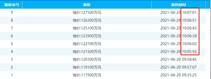 10:07 询问期过后,随即迎来一波报价,较新报价127500万元,折合楼面价16038元/㎡。